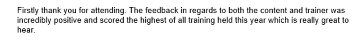 "I enjoyed the structure and approach, but most of all I enjoyed the trainer"